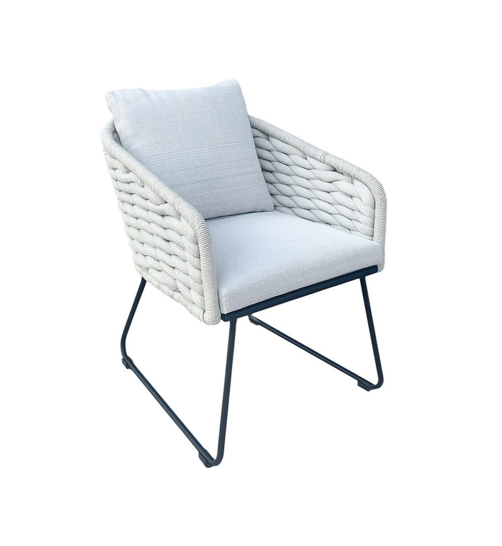 De Mondial living diningstoel Vicente sahara dust. Deze stoel is gemaakt van een Rvs onderstel en heeft een rope afwerking. De vicente diningstoel is weersbestendig en onderhoudsvriendelijk. De stoel wordt geleverd inclusief kussens.