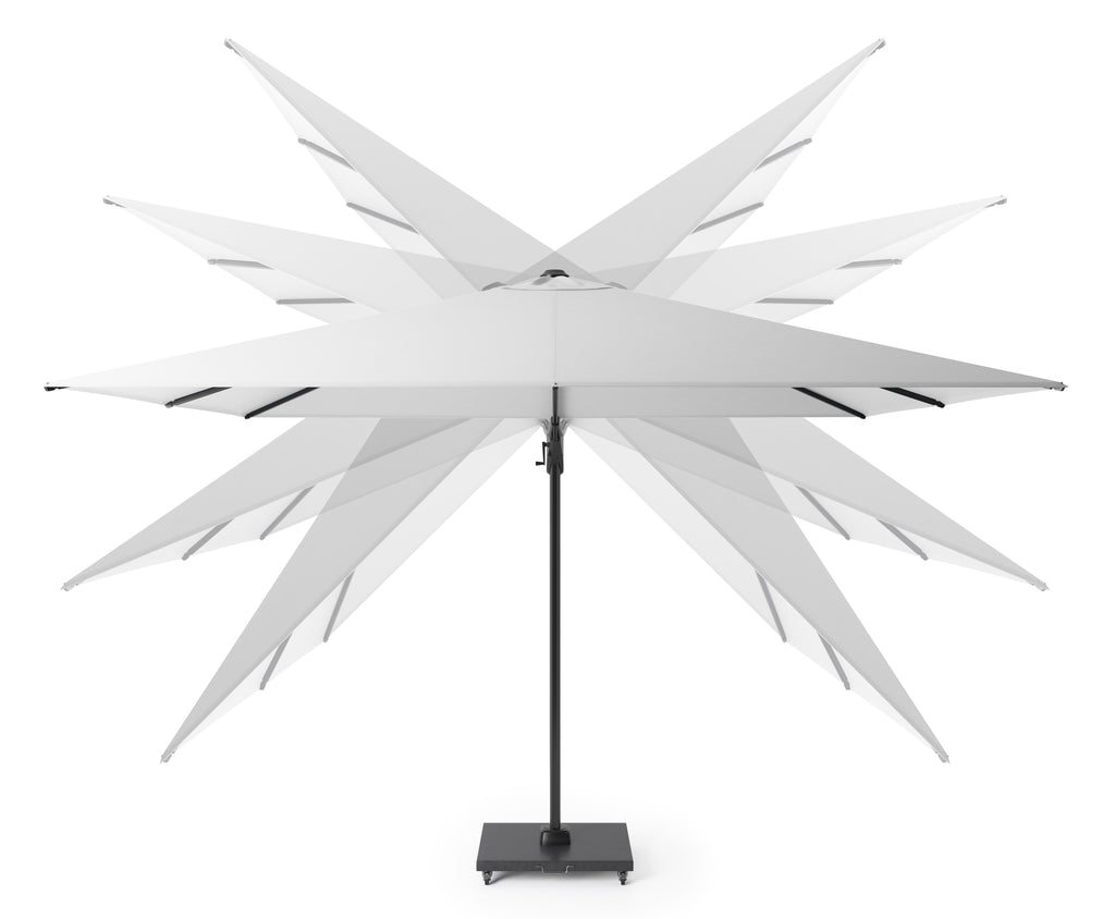 Wij adviseren bij deze zweefparasol een parasolvoet graniet 90 kilogram.