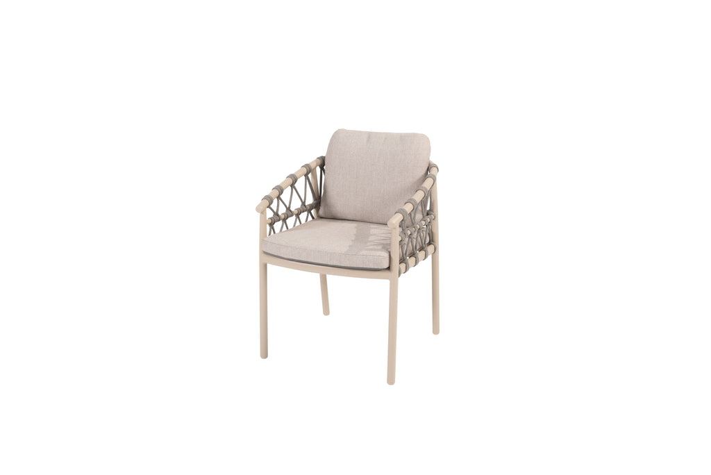 De Taste by 4 Seasons Outdoor Piacenza latte diningstoel is een comfortabele diningstoel. Deze diningstoel is gemaakt van aluminium in de kleur latte met een taupe kleurig rope afwerking. Deze diningstoel leveren wij met goed gevulde kussens, de kussens zijn afritsbaar en koud te wassen. De kussens zijn gemaakt van hoogwaardige kwaliteit, waardoor ze het gehele seizoen buiten kunnen liggen.
