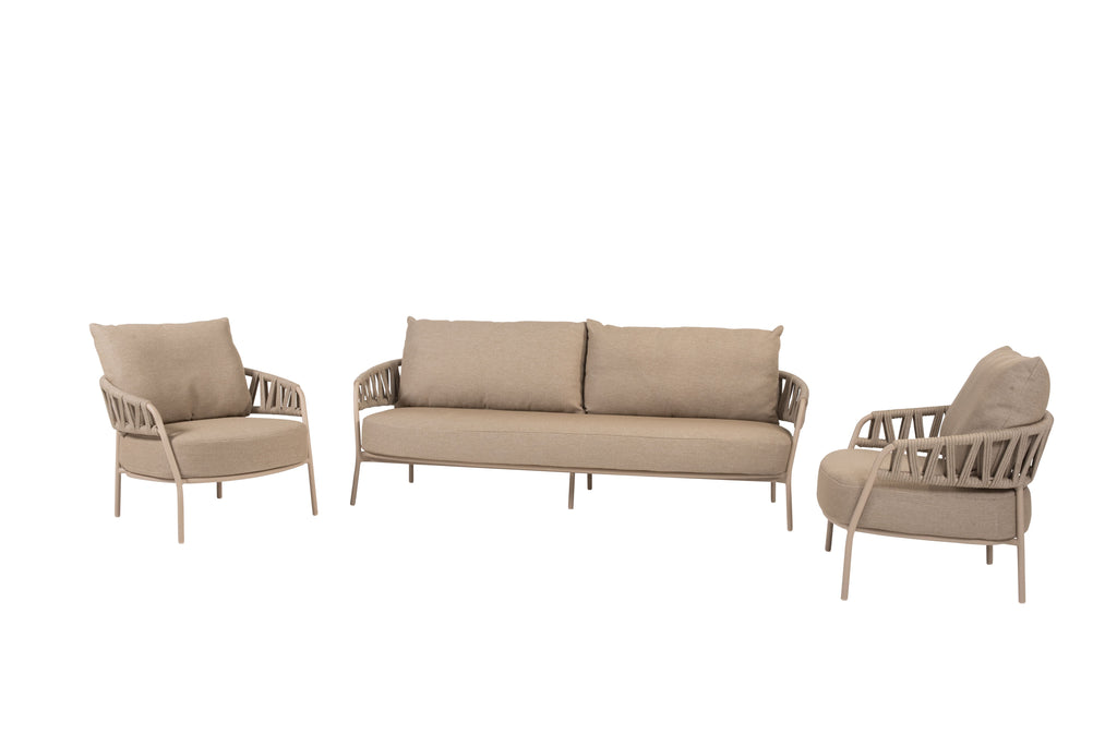 De Taste by 4 Seasons Outdoor Loungeset Calma is een comfortabele Loungeset. Deze loungeset is voorzien van een aluminium onderstel met een rope afwerking. Deze loungeset leveren wij met luxe gevulde zit- en rugkussens, de kussens zijn afritsbaar en koud te wassen. De kussens zijn gemaakt van hoogwaardige kwaliteit.
