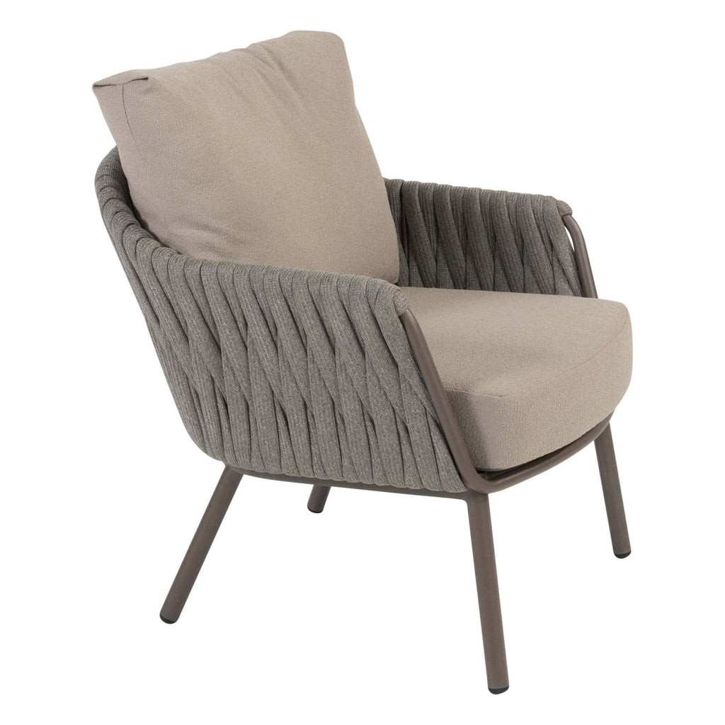 De Taste By 4 Seasons Outdoor Cannes terre is een comfortabele low diningstoel. Deze stoel  heeft een aluminium onderstel met een rope afwerking. Deze low diningstoel is weersbestendig en onderhoudsvriendelijk. De stoel wordt geleverd inclusief kussens.